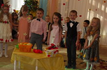 Сегодня, в нашем детском саду состоялся Осенний праздник в старшей и средней группах. На праздник осени в старшей группе заглянули "Дедушка Виноград" и " Огородное пугало". Они вместе с детьми отправились в путешествие по странам "Огородии и Фруктов", где дети собирали урожай осени.