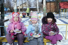 Сегодня 3 апреля у нас в детском саду прошёл татарский народный праздник «Карга боткасы» («Грачиная каша»), посвящённый приходу весны. Праздник прошёл на улице. Дети пели, танцевали, играли в игры, ели кашу на свежем воздухе. Казалось вкуснее каши не бывает. От желающих получить добавки не было отбоя. Кашу получили не только дети, но и птицы! Кашей были наполнены все кормушки.