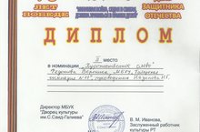 На прошедшем 19 февраля 2015г. в ДК.им.Саид-Галеева конкурсе патриотической песни, посвящённом 70-летию Победы "Шла с солдатом песня рядом" гимназию представляла ученица 3а класса Хасанова Сафира, которая награждена Дипломом. Подготовила ученицу учитель начальных классов Назипова Назия Габделнакиповна.
