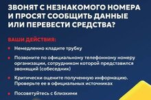 ❗️Если вам звонят с незнакомого номера и просят сообщить данные или перевести средства, то ваши действия должны быть следующими: