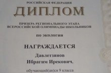Поздраляем Давлетзянова Ибрагима, ученика 9 А класса, призёра регионального этапа Всероссийской олимпиады по экологии! Молодец! Желаем успехов!