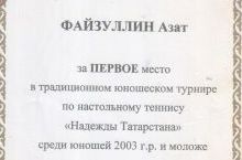 Юношеский турнир " Надежды Татарстана" 04.09.2013