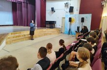 19.05 көнне гимназия укучылары Казан шәһәр Думасы депутаты Нәгыймова Венера Азат кызы һәм аның ярдәмчесе Котелкина Альбина Наил кызы белән очрашты 19.05.2025