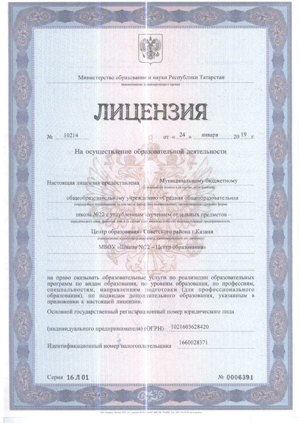 МБОУ «Средняя общеобразовательная школа №22 с углубленным изучением отдельных предметов - Центр образования» Советского района г. Казани