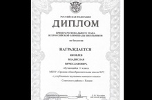 Яковлев Владислав, ученик 11А класса, стал призёром Регионального этапа Всероссийской олимпиады школьников по биологии! 24.01.2013