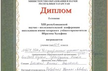 - II степени Ахтямову Саиду (11 класс). Научный руководитель – Новикова К.А.
