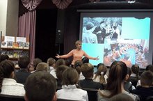 «Литературный дворик» позволил детям узнать факты из биографии писателя, посмотреть отрывки из его фильмов. Учащиеся 9В класса, Богданова Е., Бобров Е., Рыбаков В., Шаихова А. и Хуснутдинова А., подготовили художественное чтение отрывков из произведений советского писателя, а также провели викторину, где дети имели возможность заработать сладкие призы, отвечая на вопросы. В завершение мероприятия пятиклассники поделились своими впечатлениями от прочитанных произведений.