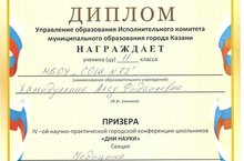 28 февраля 2017 года состоялась IV городская научно-практическая конференция школьников "Дни науки". Хамидуллина Алсу, ученица 11Б класса, стала призёром данной конференции (секция "Медицина").
