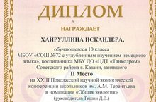 Хайруллин Искандер, ученик 10А класса, призёр XXIII Поволжской экологической конференции школьников имени А.М.Терентьева! 09.03.2017