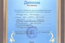 8а сыйныфы укучысы Хайруллин Искәндәр 90нчы гимназиядә үткәрелгән “Интеллект. Карьера” шәһәр фәнни-тикшеренү конференциясендә “Татар филологиясе” секциясендә “Сугыш вакыты “интернетка кадәр” һәм хәзерге яшьләрнең тормышы” тикшеренү эше белән 3нче урын яулады! Котлыйбыз!