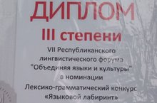 28 февраля ученица 8 класса Файзеева Л. приняла участие в VII Республиканском лингвистическом форуме "Объединяя языки и культуры", который проводит К(П)ФУ и стала дипломантом III степени. Молодец! Поздравляем!