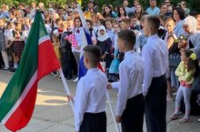 1 сентября в школе пршли праздничные линейки с поднятием государственного флага РФ и РТ .