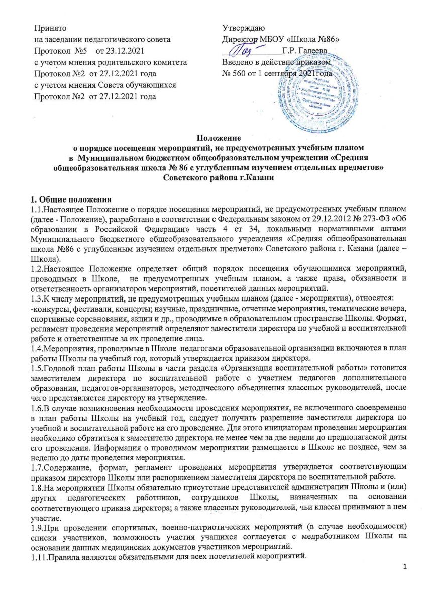 - Порядок посещения мероприятий , не предусмотренных учебным планом (электронный документ), копия