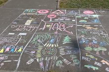 В рамках акции "Внимание - дети" в начальной школе состоялся конкурс рисунков на асфальте на тему "Мы - пешеходы". Ученики показали хорошие знания по правилам дорожного движения и дорожнмы знакам.