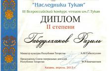 Габдулла Тукай исемендәге III Бөтенрәсәй шигырь сөйләүчеләр бәйгесендә катнашып, гимназиябезнең 6 “А” сыйныфы укучысы Хафизова Гүзәл Дипломант булды, 2 “А” сыйныфы укучысы Габделхаков Рәзил II дәрәҗәдәге диплом яулады.