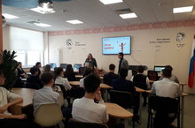 «Урок цифры» в 10а классе проводил Рустем Жаудатович Юнусов, заместитель директора по работе с резидентами и внешним связям ГАУ "ИТ-парк".