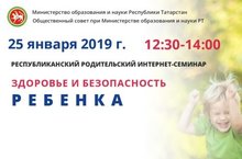 25 января 2019 года проводится республиканский родительский интернет-семинар "Здоровье и безопасность ребенка"