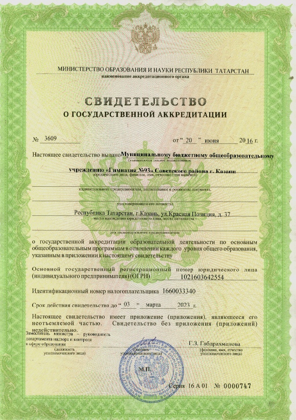 Муниципальное бюджетное общеобразовательное учреждение «Гимназия №93 имени А.С.Пушкина» Cоветского района г.Казани