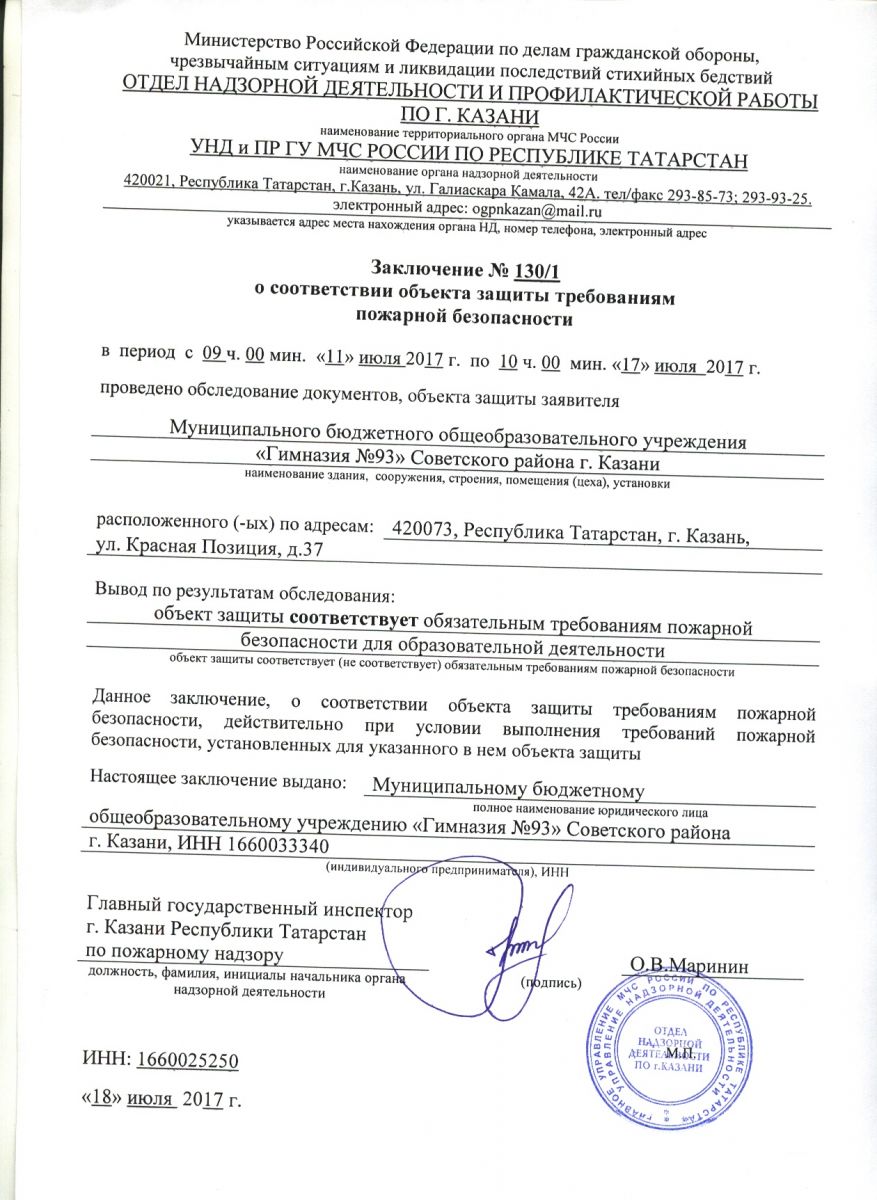 Заключение от 18.07.2017г. №130/1 о соответствии объекта защиты требованиям требованиям пожарной безопасности для образовательной деятельности/upload/storage/org2346/files/заключение.jpg