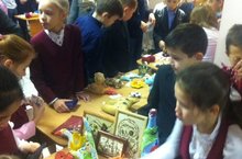 Сегодня мы провели ярмарку благотворительности. Интересные поделки ,новогодгие украшения ,бусы,броши ,варежки и носки- всё пригодится в период новогодних каникул.