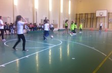 Девчонки и мальчишки приняли участие в соревнованиях по футболу.