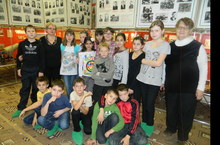 Сегодня-первый день каникул и наш класс посетил "Музей истории Казанского оптико-механического завода", который находится в ДК имени С.Саид-Галиева. Экскурсовод Ольга Александровна рассказала нам о прошлом и сегодняшнем дне КОМЗа. Особенно понравилось то, что нам разрешили прикоснуться к историческим вещам военного времени: мы примерили солдатскую пилотку, подержали в руках фугасные бомбы, офицерский ремень переходил из рук в руки. Витрина с посудой военного времени поразила нас. А какие были детские игрушки! Тяжёлые, чугунные. Многие решили, что они очень опасные. Но в войну других не могло быть. Мы поблагодарили руководителя Музея Панину Светлану Васильевну и экскуровода Ольгу Александровну, оставили записи благодарности в Книге отзывов. Нам очень понравилось в Музее и мы решили прийти сюда ещё не один раз!