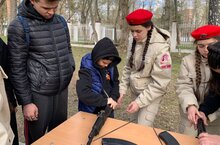 Юнармейцы 9г класса провели мастер-класс по сборке и разборке автомата Калашникова с жителями ж.м. Дербышки на празднике "Наследники ВЕЛИКОЙ ПОБЕДЫ"