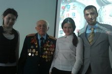 Ученицы восьмого класса и заместитель директора по воспитательной работе, Валиуллин Наиль Асхатович, сегодня встретились с ветераном ВОВ, Волковым Юрием Александровичем..