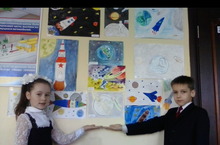 Ежегодно учащиеся начальных классов принимают участие в школьной выставке "Первый полет в космос"