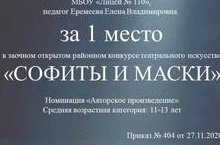 В районном конкурсе "Софиты и маски" ученицы 6 класса Зескова А. и Бламыкова С. заняли призовые места. Руководитель - учитель русского языка и литературы Е.В. Еремеева. Поздравляем!