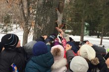 Сегодня учащиеся 3 "А", 3 "Г" классов кормили белок в Парке Горького.