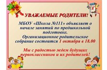 МБОУ «Школа №111» объявляет о начале занятий по предшкольной подготовке «Почемучки».