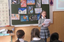Зал матур итеп бизәлгән. Һәр сыйныф бәйрәм өчен рәсемнәр әзерләгән,шигырьләр өйрәнгән иде.Һәр кешенең йөзендә шатлык, ә залда бәйрәм рухы сизелеп тора иде. Бәйрәмгә 1-6нчы сыйныф укучылары,әти-әниләр,директор урынбасарлары,укытучылар килгән иде.