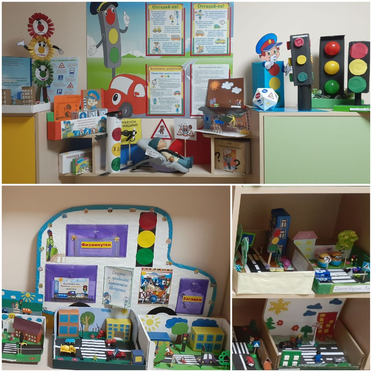 Правила дорожного движения, это одна из главных тем для обсуждения с детьми. С помощью родителей в холле нашего детского сада мы создали центр по ПДД. Основной целью которого является: формирование навыков безопасного поведения на дорогах, адаптации детей к транспортной среде.Правила дорожного движения должны знать и соблюдать все: и пешеходы и водители. Воспитатели, дети и их родители приняли активное участие в выставке поделок по правилам дорожного движения. Поделки были выполнены из различных материалов и представляли собой объемные игрушки, различных размеров и дизайна. Забавные и оригинальные светофоры украсили нашу выставку. Дети с удовольствием изучают поделки, делятся впечатлениями и знаниями по правилам дорожного движения.