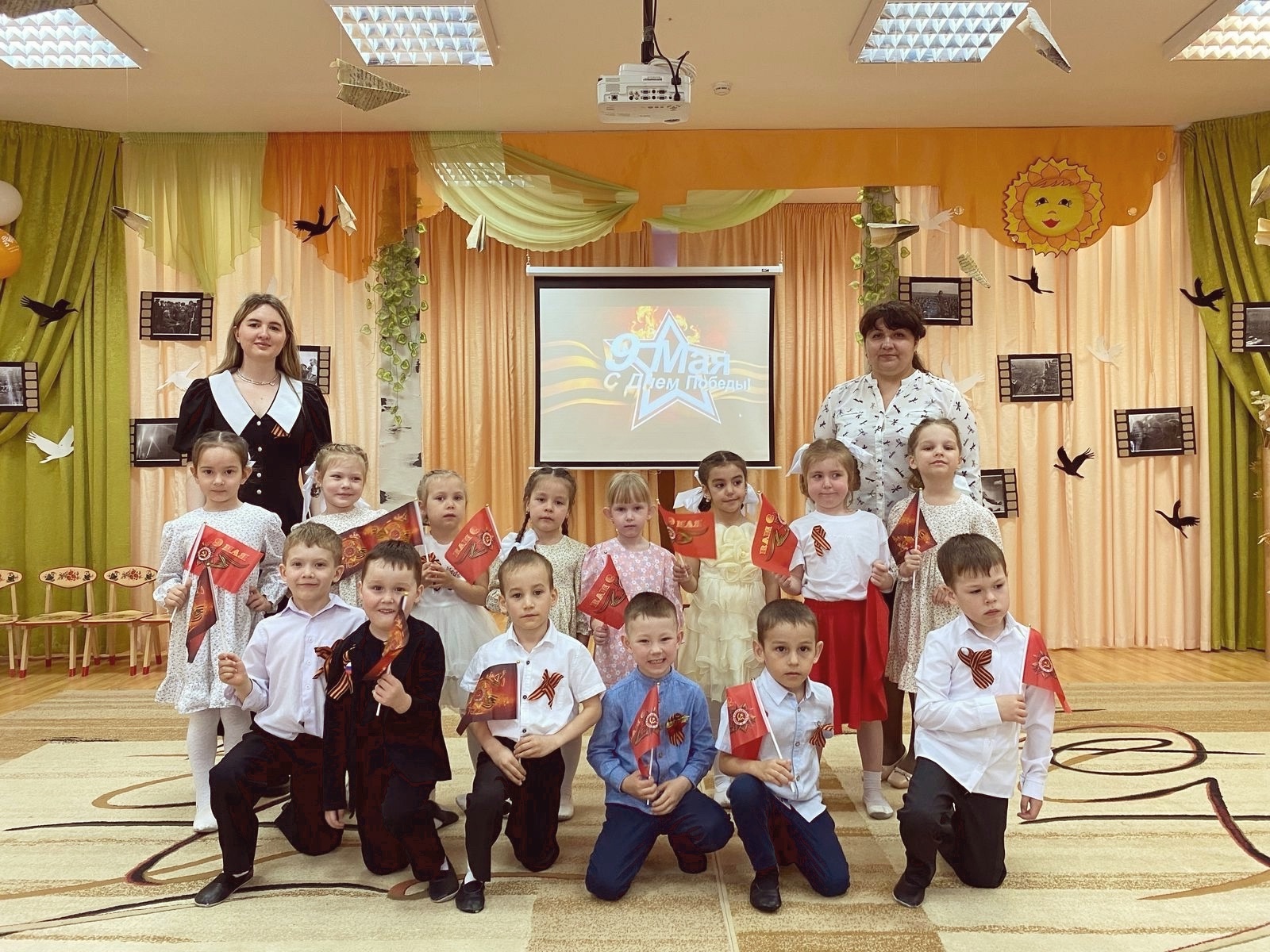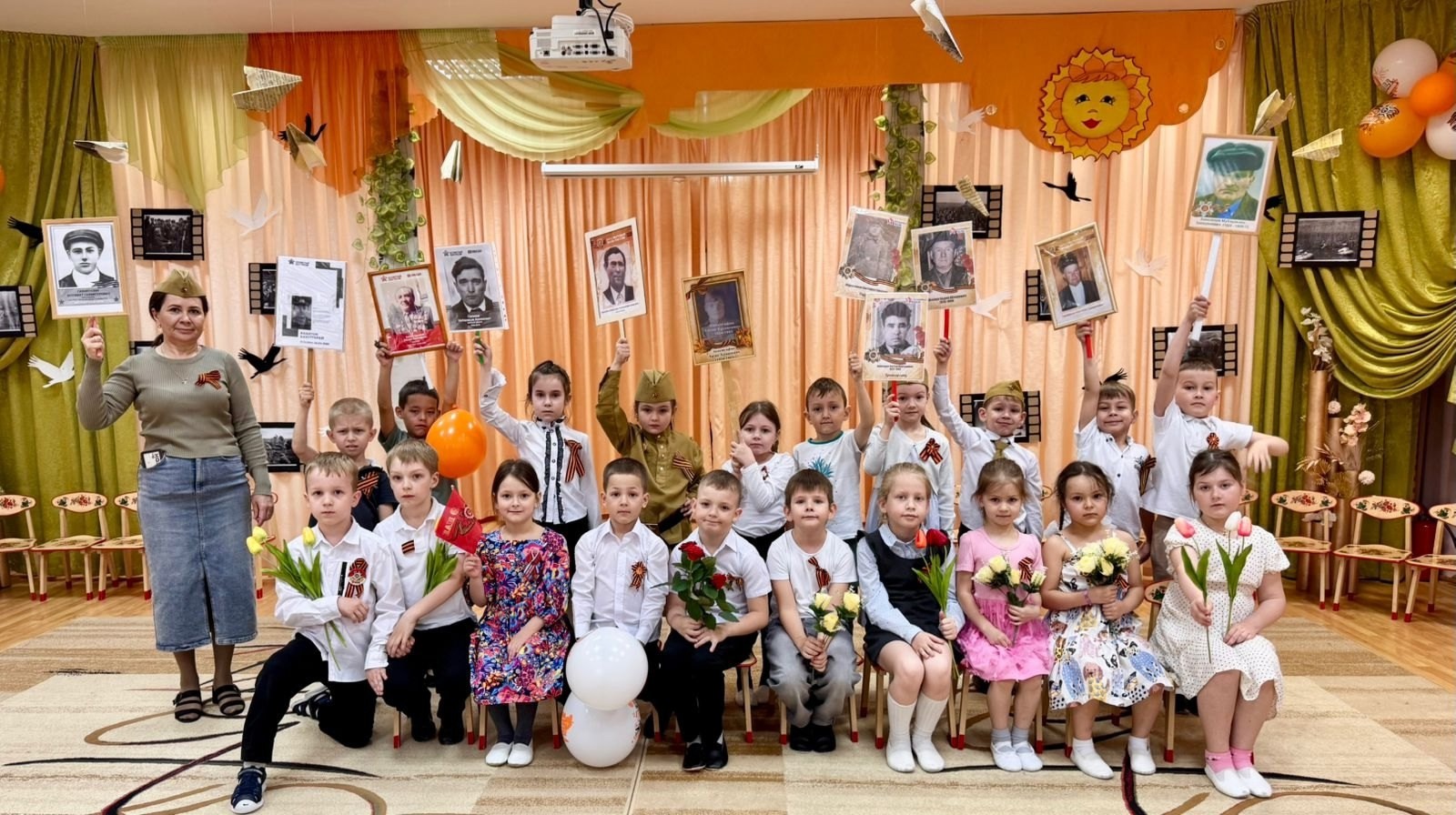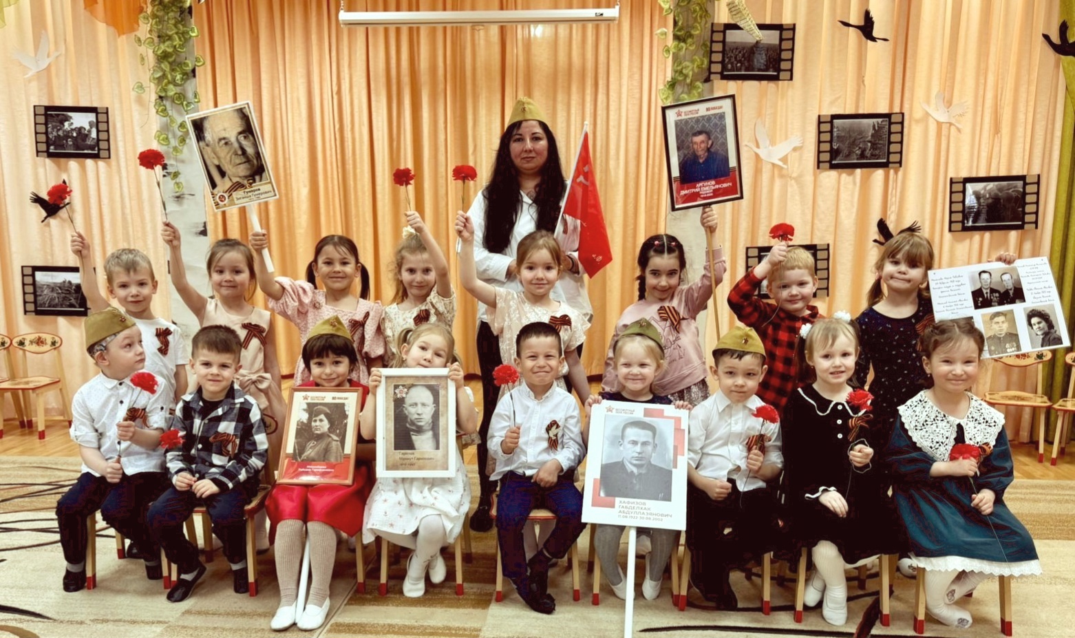 Сегодня в нашем детском саду "Золотой ключик" прошёл праздничный концерт, посвящённый 80 - годовщине Дня Победы в Великой Отечественной войне "Память в сердцах поколений" и Году Защитника Отечества. 9 мая 1945 года уходит все дальше и дальше от нас, но мы по – прежнему помним, какой ценой досталась эта победа нашему народу, как любили, берегли и защищали ее наши предки, наши отцы и деды. Нельзя, чтобы наши дети забывали об этом! Праздничное мероприятие позволило более ярко и ближе воспринять события прошлых военных лет, дети с огромным удовольствием исполняли песни военных лет, читали стихи, танцевали и принимали участие в сценках. А самое главное детей сплотило чувство великой гордости за наших ветеранов и великую Родину! Также педагоги и воспитанники присоединились к акции «Бессмертный полк»