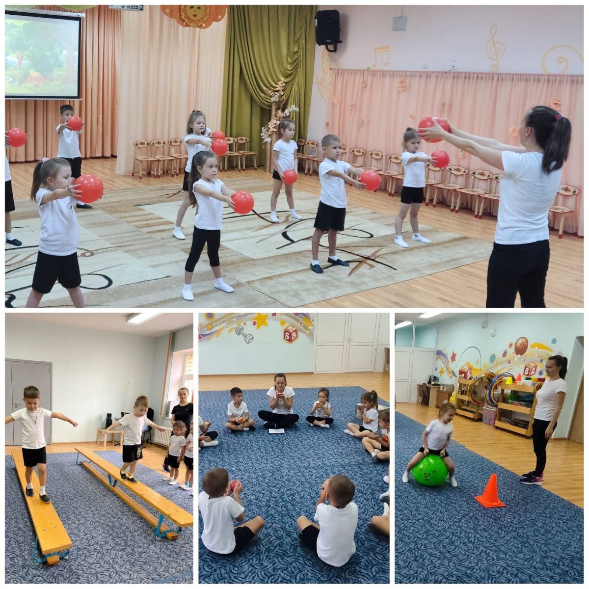 Что главное в воспитании детей? Ребёнок должен расти, здоровым. Здоровье - важнейшая предпосылка правильного формирования характера, развития инициативы, сильной воли, природных способностей. У здорового ребёнка быстрее формируются все необходимые знания и навыки. Физкультурно-оздоровительной работе в нашем детском саду уделяется повышенное внимание. Именно регулярные занятия физкультурой способствуют укреплению здоровья, повышению иммунитета и физическому развитию наших малышей. Помимо непосредственно физкультурных занятий, в детском саду проводятся утренняя гимнастика, гимнастика после дневного сна, физкультминутки, закаливание, дыхательная гимнастика, упражнения между занятиями (динамическая пауза), физкультура на свежем воздухе, спортивные праздники и физкультурные досуги.Со спортом дружим мы всегда,