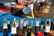 Ребята с удовольствием включились в процесс: кто-то старался выполнить упражнения идеально, кто-то просто ловил ритм, но главное — никто не остался в стороне.