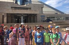 Ура, каникулы! Сегодня наш пришкольный лагерь «Ялкын» ездил в Пирамиду на просмотр сказки «Музыкальный цветок». Поездка очень понравилась, дети получили массу впечатлений!