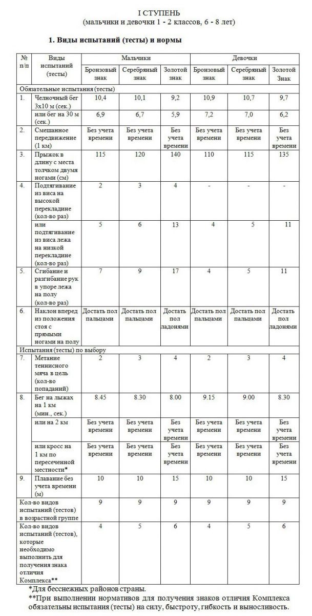 1 ступень мальчики и девочки 1 - 2 классов 6-8 лет