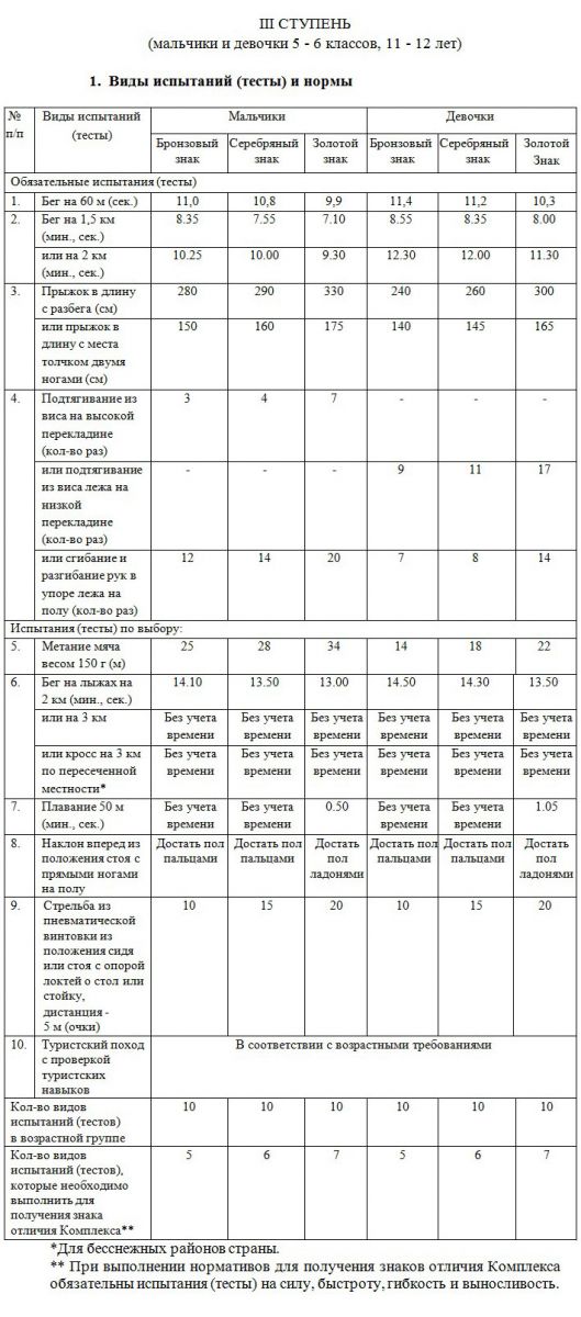 3 ступень мальчики и девочки 5 6 классов 11 12 лет