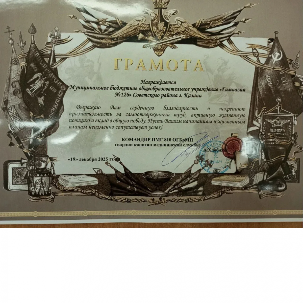 Сегодня нашей гимназии вручили грамоту за организацию сбора гуманитарной помощи. -