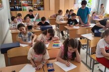 Школьный лагерь начался с традиционной зарядки и линейки, чтобы познакомиться с распорядком на день.