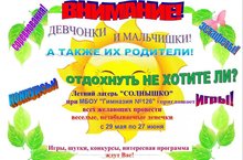 Лето – время игр и развлечений, снятия накопившегося за учебный год напряжения, восстановления здоровья. Ежегодно, по сложившейся уже традиции, открывает свою смену пришкольный лагерь «Солнышко». Это тот период, когда ребята с головой погружаются в атмосферу праздника и становятся участниками настоящих чудес. Насыщенная программа лагерной смены надолго запоминается учащимся, так как дарит массу позитивных эмоций. С самого раннего утра на территории нашей школы раздался веселый, детский смех и началась интересная лагерная жизнь. Согласно плану воспитательной работы лагеря в первый день дети начали готовиться к открытию смены. Вместе с воспитателями они придумали названия отрядов, девизы, оформляли свои отрядные уголки. Вот как это было...
