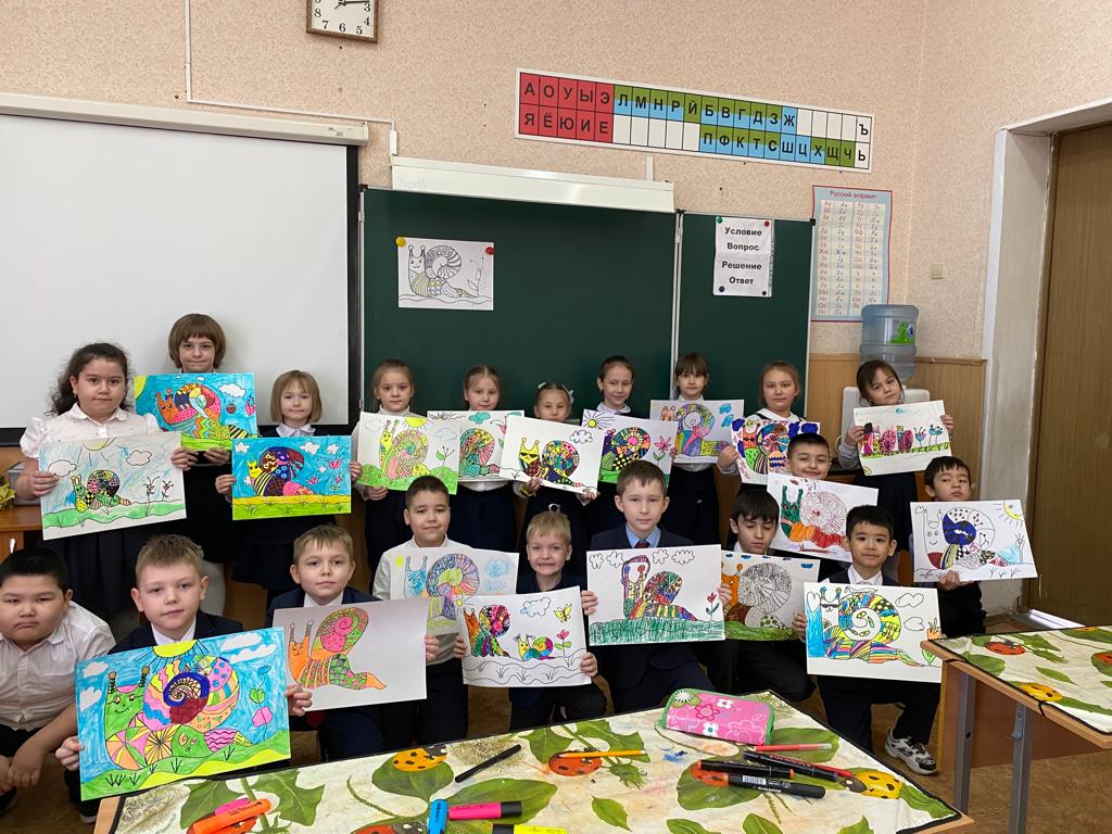 Продолжаем знакомиться с творчеством учащихся 1А класса. Обучащиеся занимаются в Аrt-студии и сегодня тема занятий "Улитка". Улитка символизировала вечность и плодородие в Египте и Вавилоне, а в средневековой Европе — грех и леность. Позже она стала символом скромности. В исламе улитка символизирует сомнение, в буддизме — терпение, а её раковина — застывшее время.