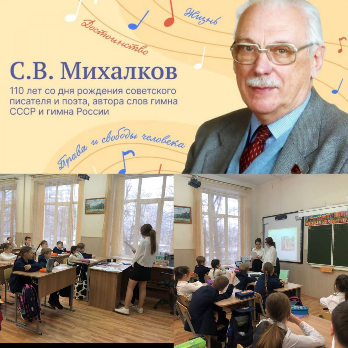 Сегодняшние разговоры о важном посвящены 110 летию со дня рождения С.В.Михалкова. Учащиеся педагогического 10 А класса провели занятие в 3А классе.