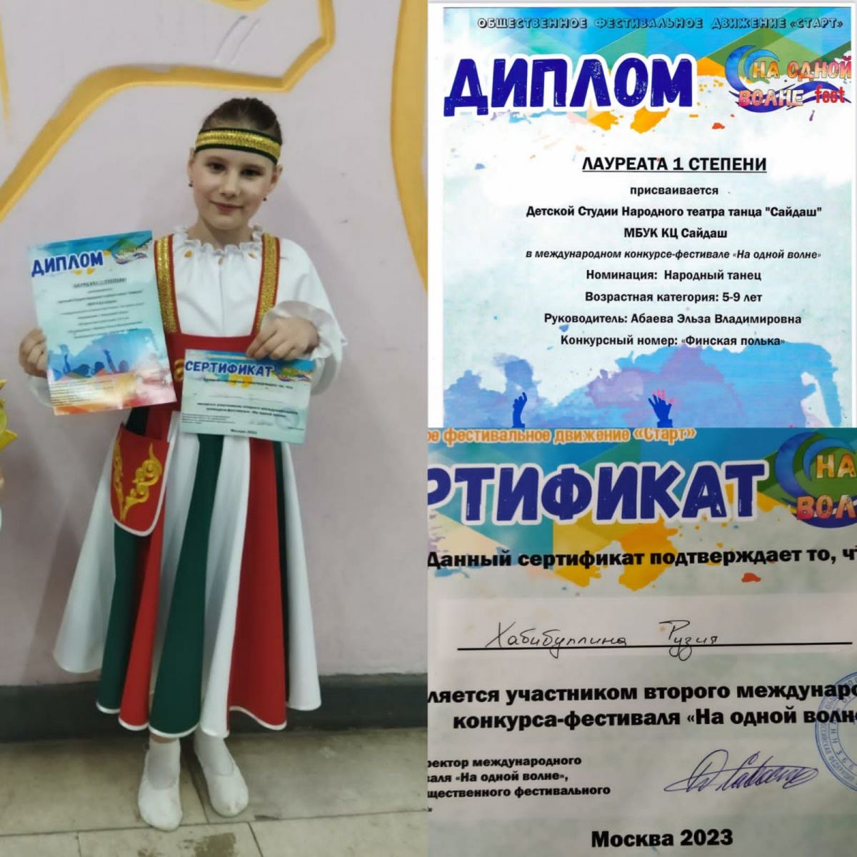 Поздравляем ученицу 4 А класса Сабирову Разалью с победой. Разалья заняла Гран при в Международном конкурсе-фестивале "На одной волне" в номинации "Народный танец" с номером Смоленский гусачок. Благодарим за подготовку преподавателя Абаеву Эльзу Владимировну. Желаем дальнейших успехов и творческих побед.