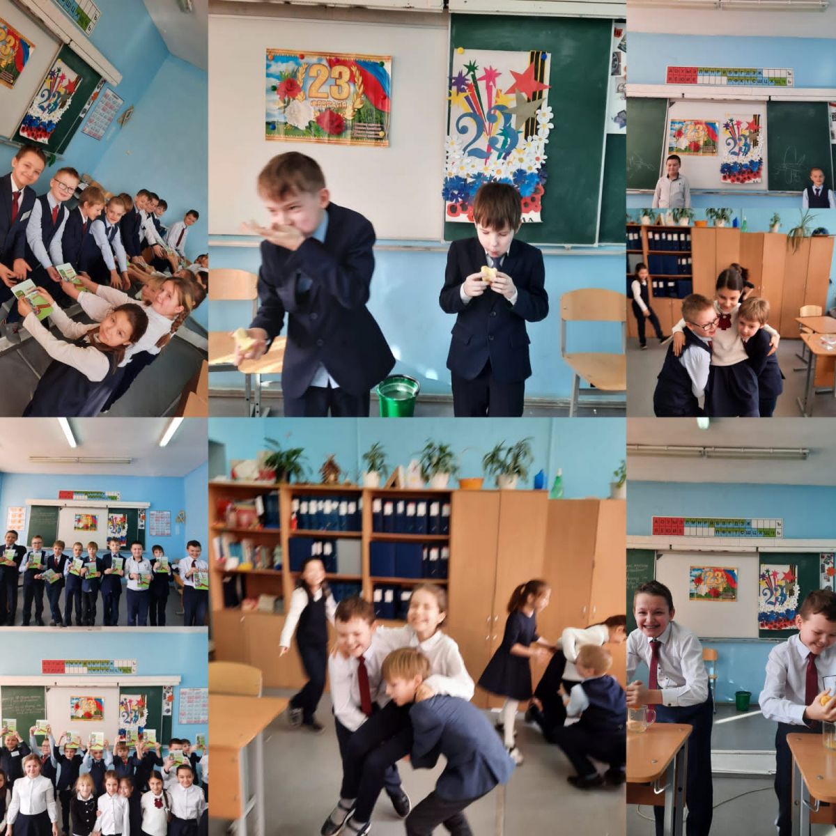 По сложившейся традиции в каждом классе к 23 февраля готовятся поздравить своих пап, дедушек, братьев и конечно своих одноклассников. Рисуют открытки, читают стихи, проводят квесты, разыгрываю сценки, готовят концертные номера, дарят небольшие сувениры. 3Б класс поздравляет мальчишек