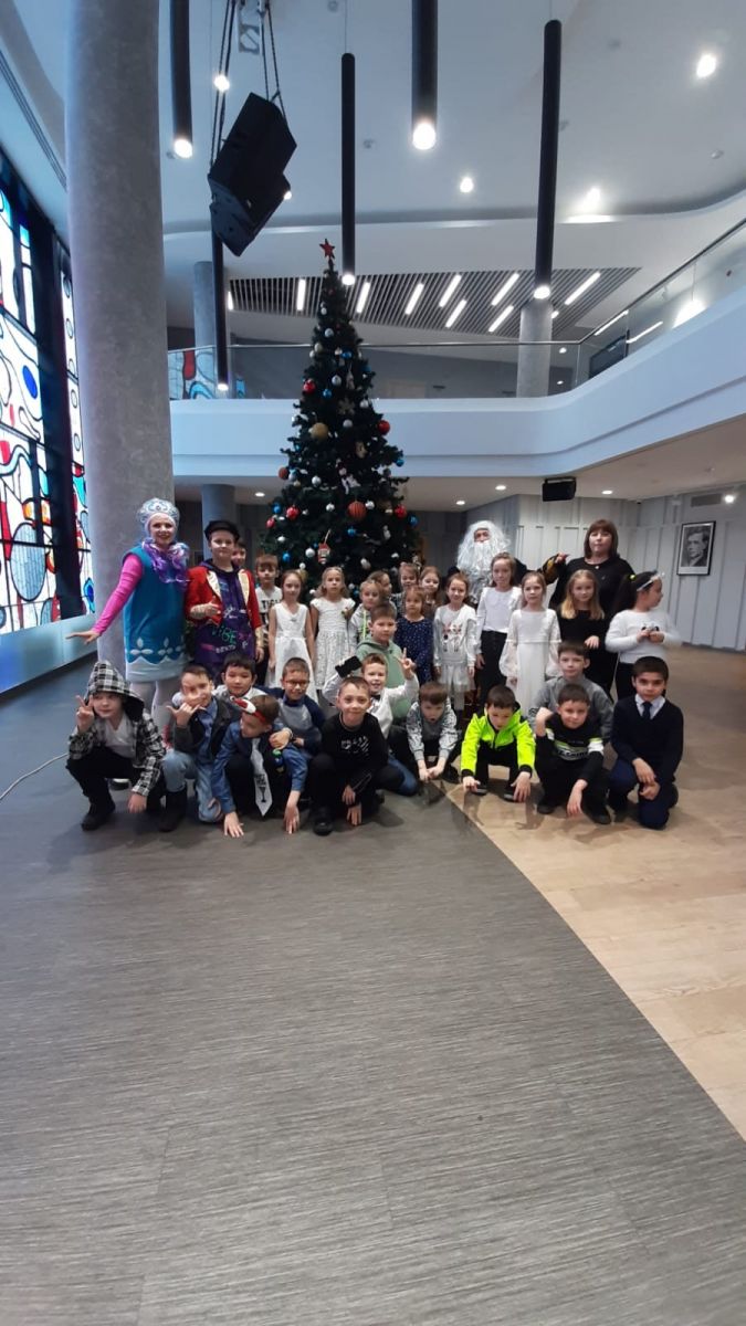 2 А класс, классный руководитель Салихова Кадрия Гайнулловна отправился на спектакль "Новогоднее чудо или приключения Елисея". Главные сказочные персонажи российских мультфильмов и сказок помогают главному персонажу Елисею. На своем пути он повстречал много препятствий однако лесные жители, герои сказок, такие как Аленка, Баба Яга, Роза Барбоскина, Файер и Снеговик помогли Елисею. Новогоднее музыкальное театрализованное представление "НОВОГОДНЕЕ ЧУДО" ни оставил равнодушными ни детей, ни взрослых!
