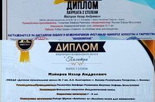 Поздравляем ученика 3 Б класса, Майорова Назара с очередными победами. Диплом Лауреата II степени в Международном фестивале-конкурсе искусства и творчества "Вдохновение" и Диплом Лауреата II степени в Международном фестивале - конкурсе "Палитра". Благодарим за подготовку преподавателя ДМШ №7 Толмачеву Земфиру Разиновну. Желаем дальнейших успехов и творческих побед.