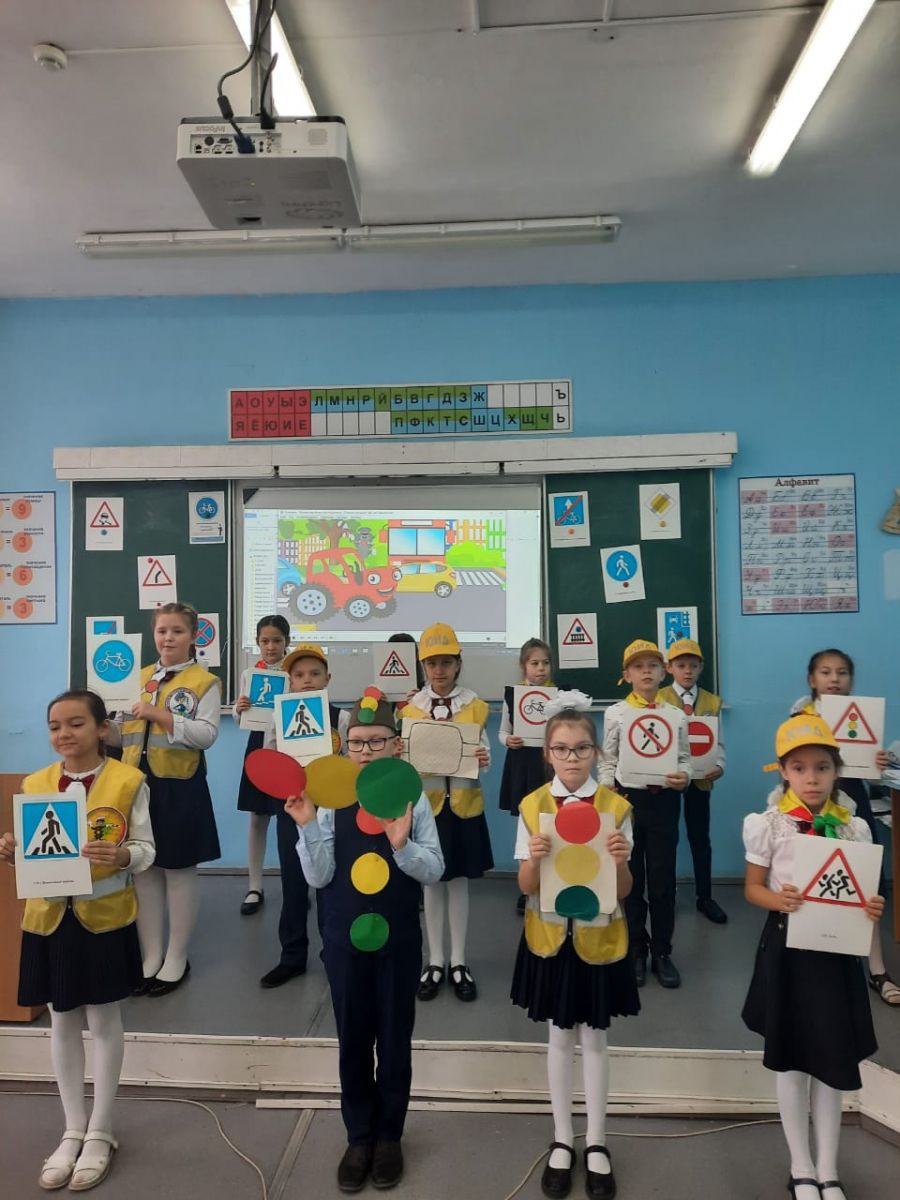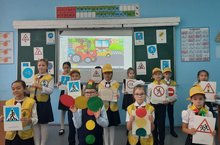 Отряд ЮИД - учащиеся 3Б класса провел мероприятие для учеников 1В,1Г класса по соблюдению ПДД